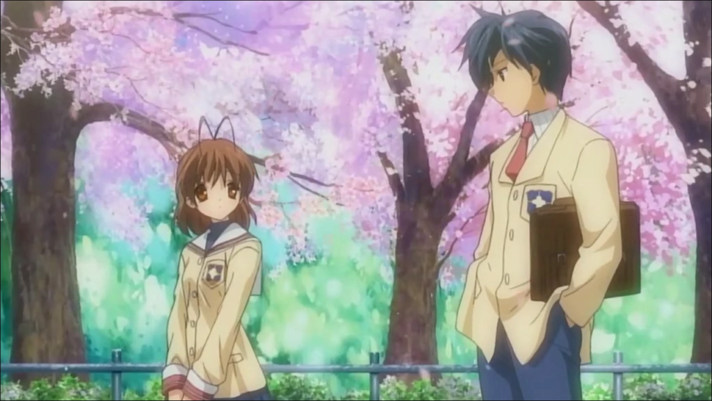 Spoiler vermeden azıcık özetlemem gerekirse hikaye Tomoya Okazaki ve Nagisa Furukawa’nın beraber aştıkları zorlukları ve birbirleri üzerinde gerçekleştirdikleri etkileri ele alıyor. Karakter gelişimi de bu yüzden barınıyor evet. Mesela Okazaki serinin başında oldukça fevri, agresif ve umursamazken ileride daha önemseyen, ağırbaşlı ve anlayışlı bir kişiliğe dönüyor. Hikaye ilerledikçe ana karakterlerimizin umursadıkları ve problemlerini çözdükleri farklı karakterler de aralarına katılıyorlar. Bu karakterler için de karakter gelişimi gerçekleşiyor. Animenin türü de zaten drama, romantizm ve doğaüstü olduğu için neler oluyor aşağı yukarı anlayabilirsiniz. Endişelenmeyin arkadaş gruplarına yeni katılanların hepsi kız olsalar da ana karakterlerimizden Okazaki bunu bir harem animesine dönüştürmüyor. Sevmeye ve değer vermeye başladığı o yegane kişiyi arada sırada odağından kaçırsa da dönmeyi biliyor.